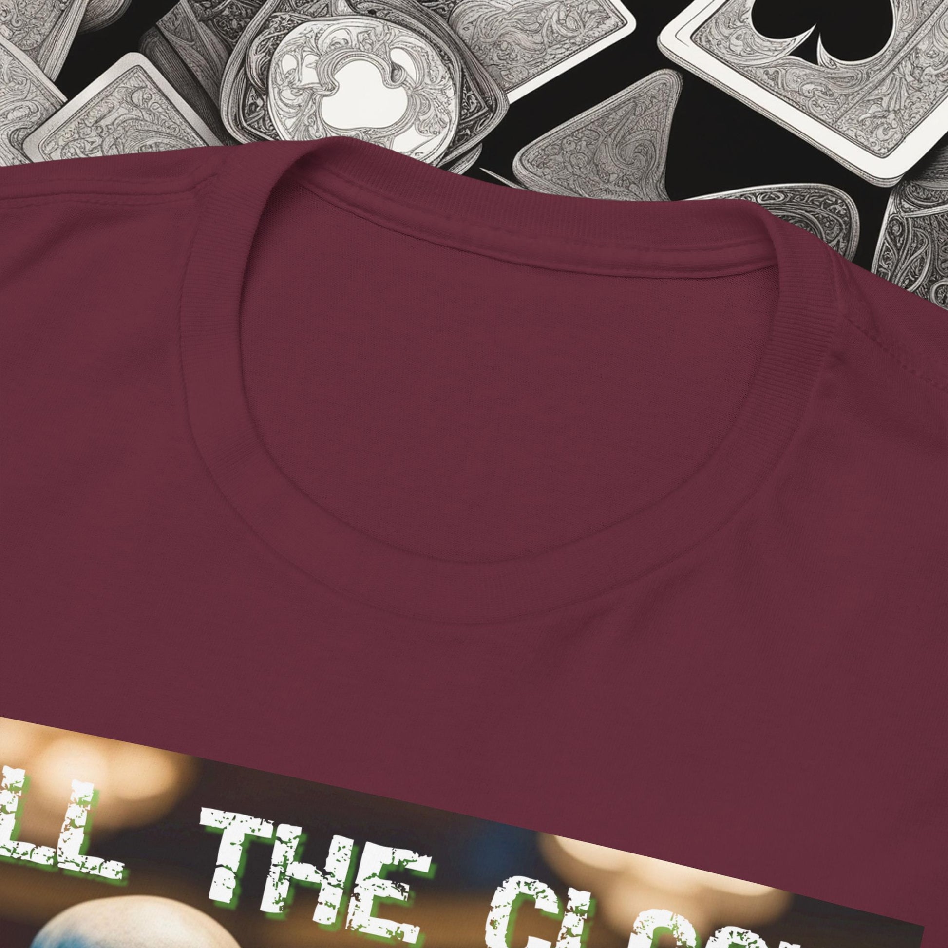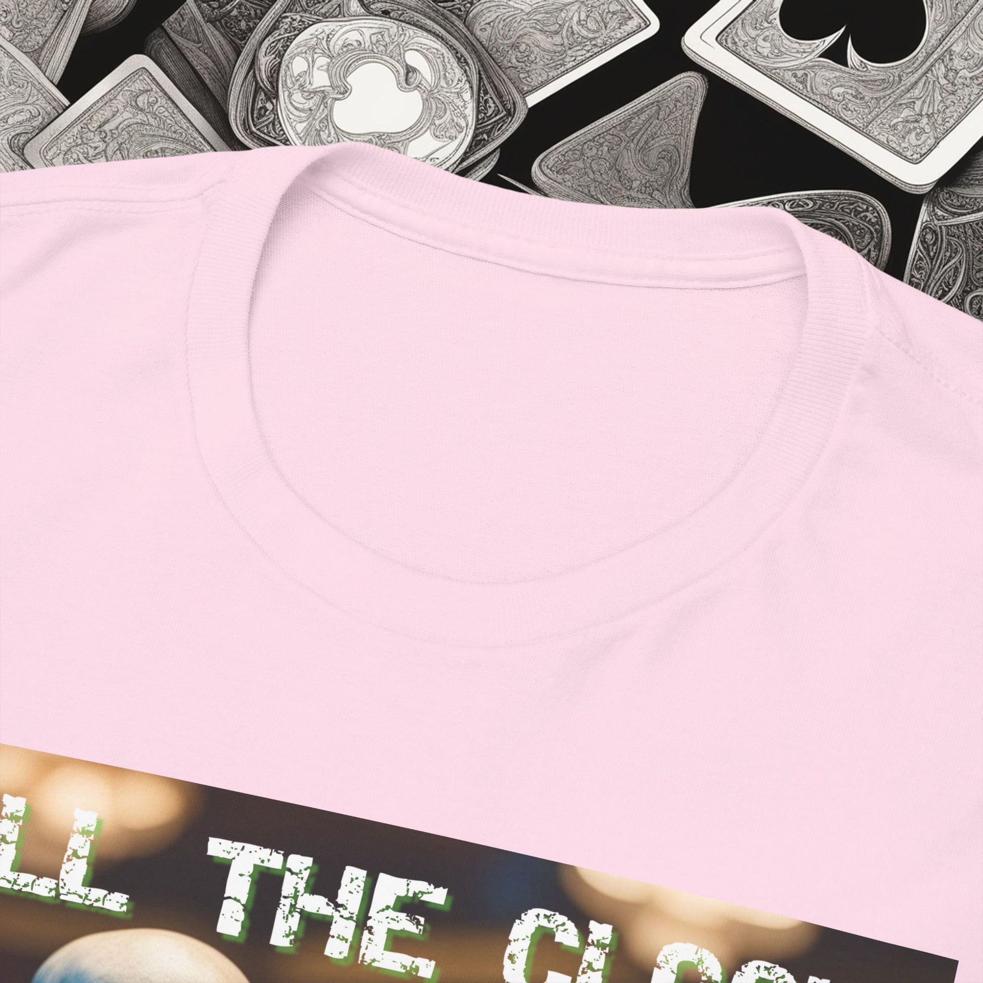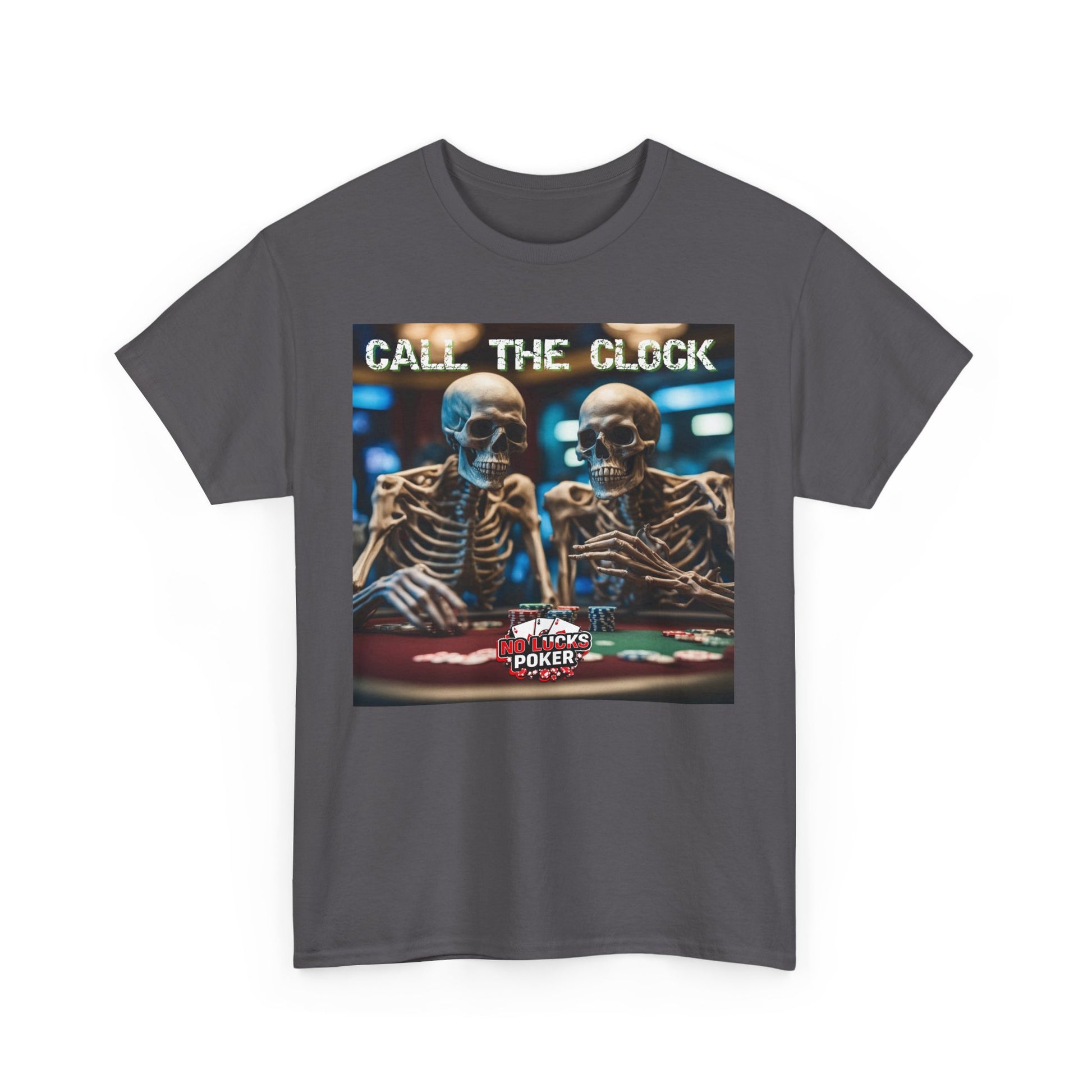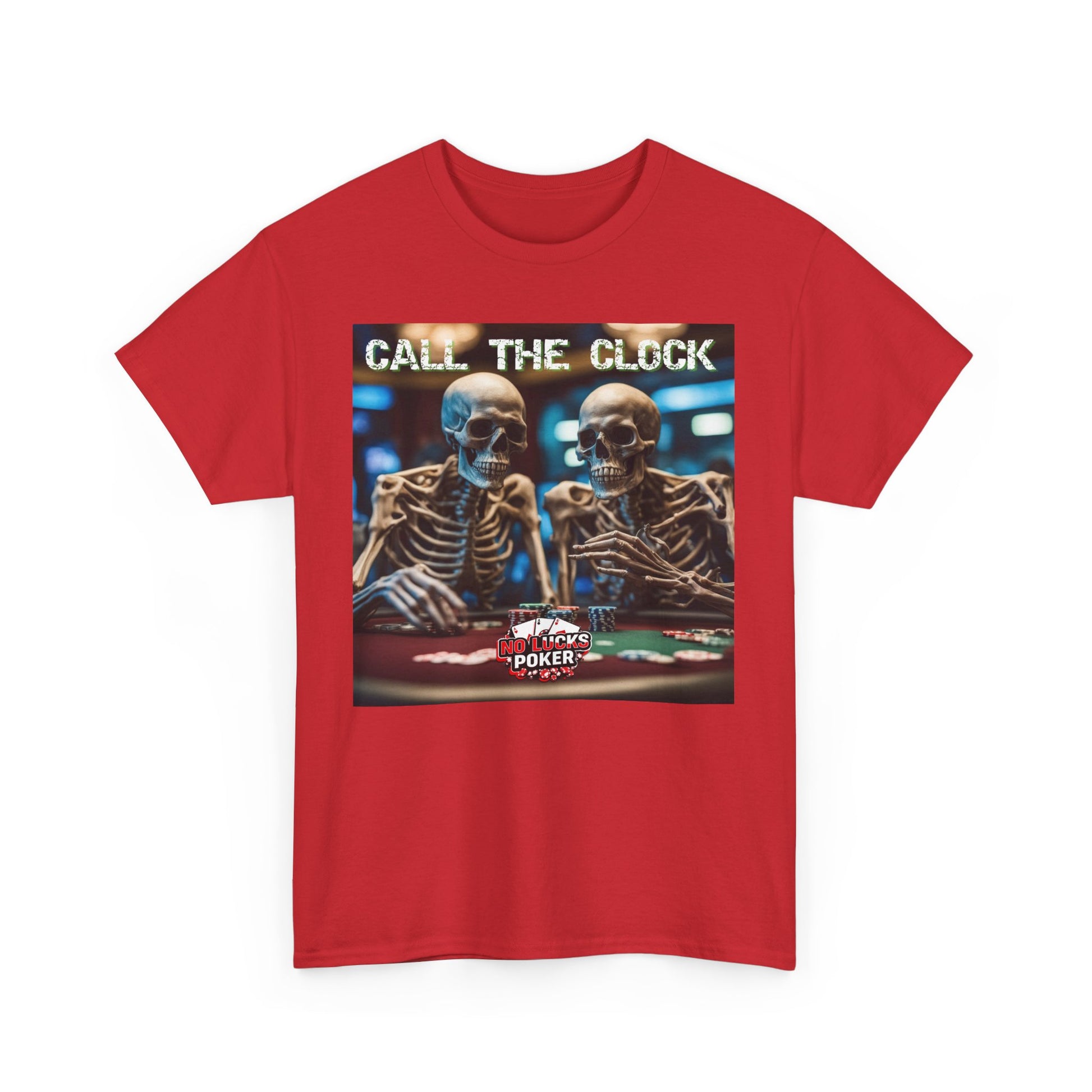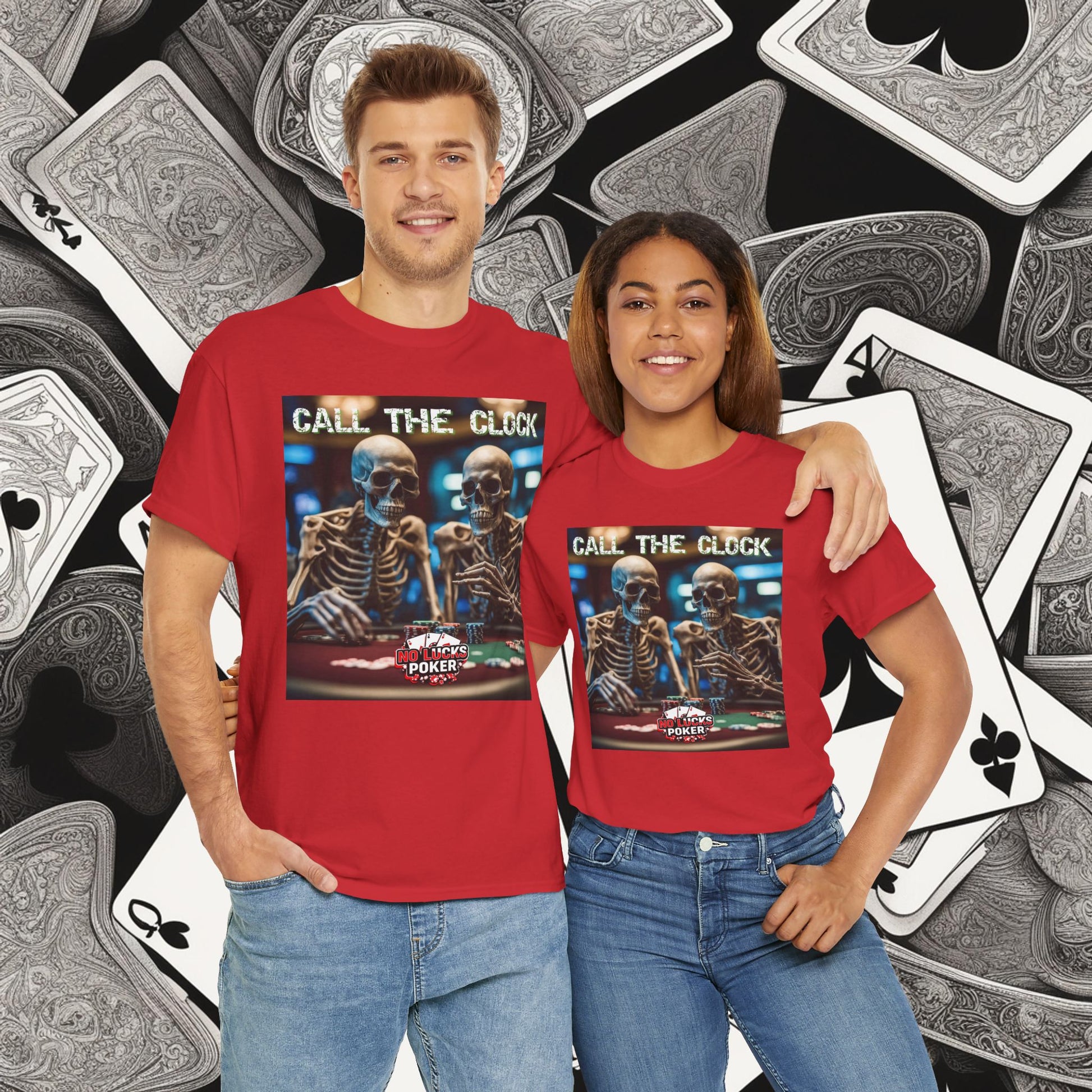 Step up your poker game with the "Call the Clock Skull" Unisex Heavy Cotton T-Shirt. Designed for players who live by skill and strategy, this tee embodies the fearless spirit of going all-in without relying on luck.