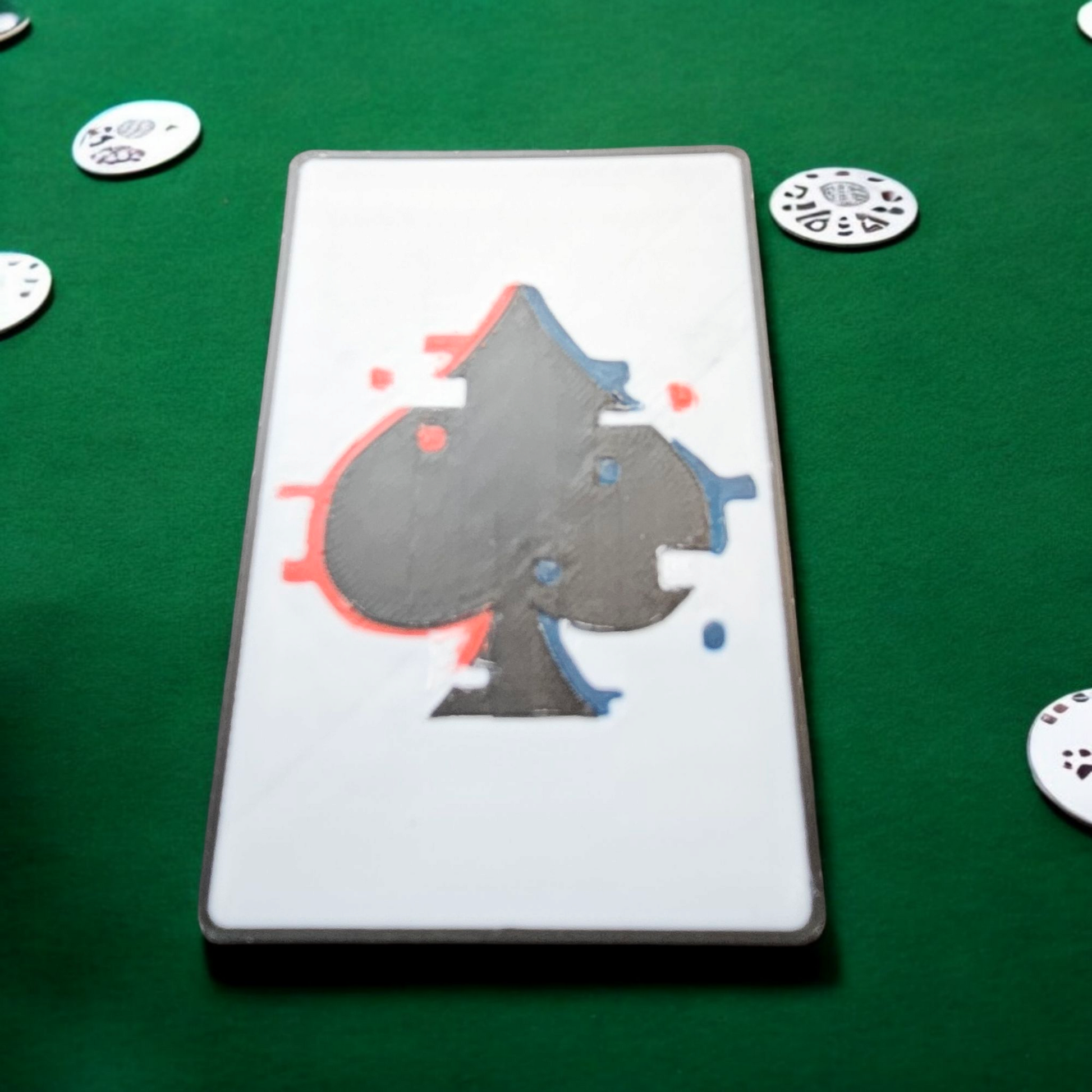 This custom 3D printed poker cut card lets you add your text, logo, initials, or icon. Whether you're representing your home game crew, dealing in a poker room, or giving a unique gift, this card combines function with bold, custom flair.