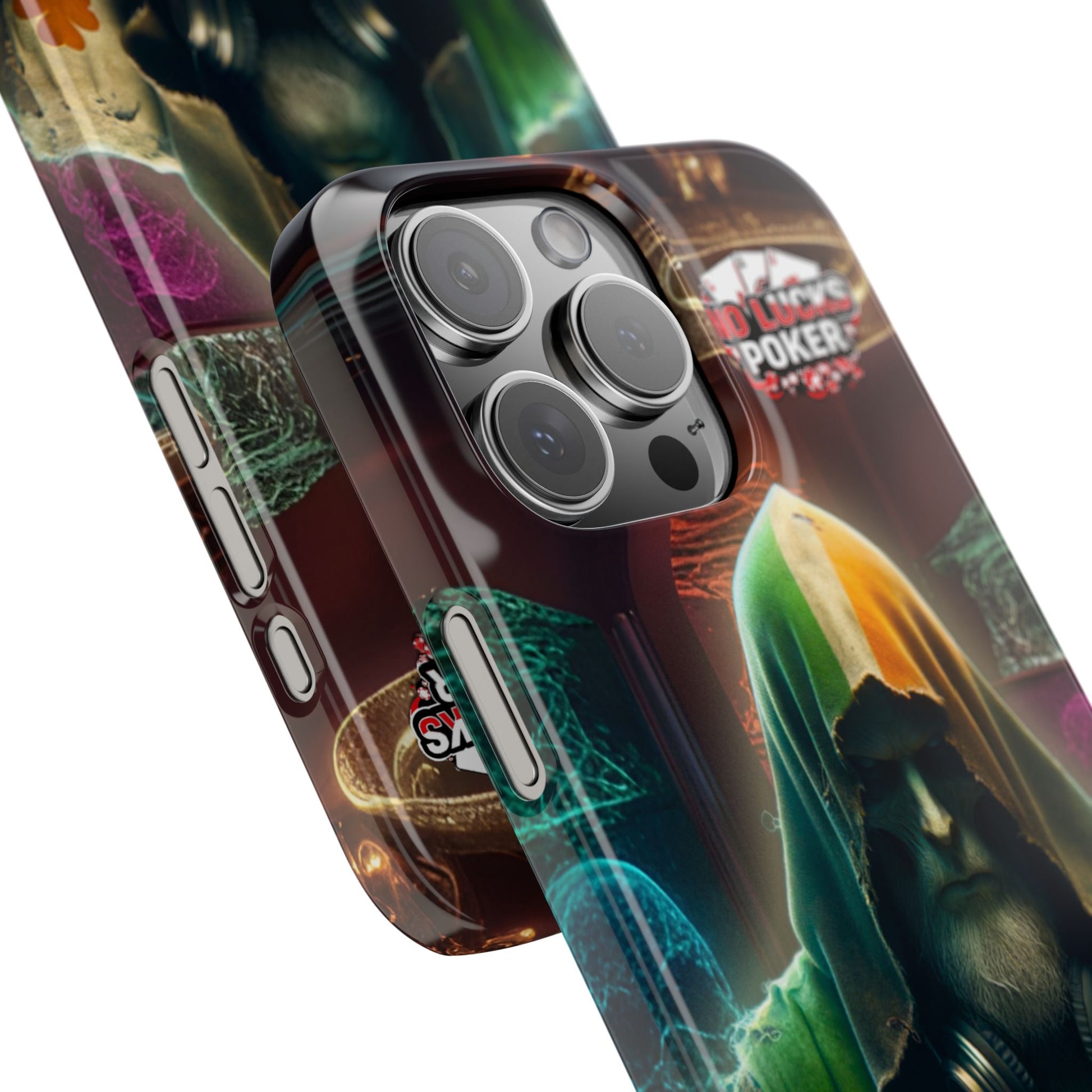 Step into the enigmatic world of high-stakes poker with our Mysterious Irish Poker Player Slim Phone Case. Designed for iPhone models 13 through 15, this case combines sleek protection with a captivating design that pays homage to the allure of the game.