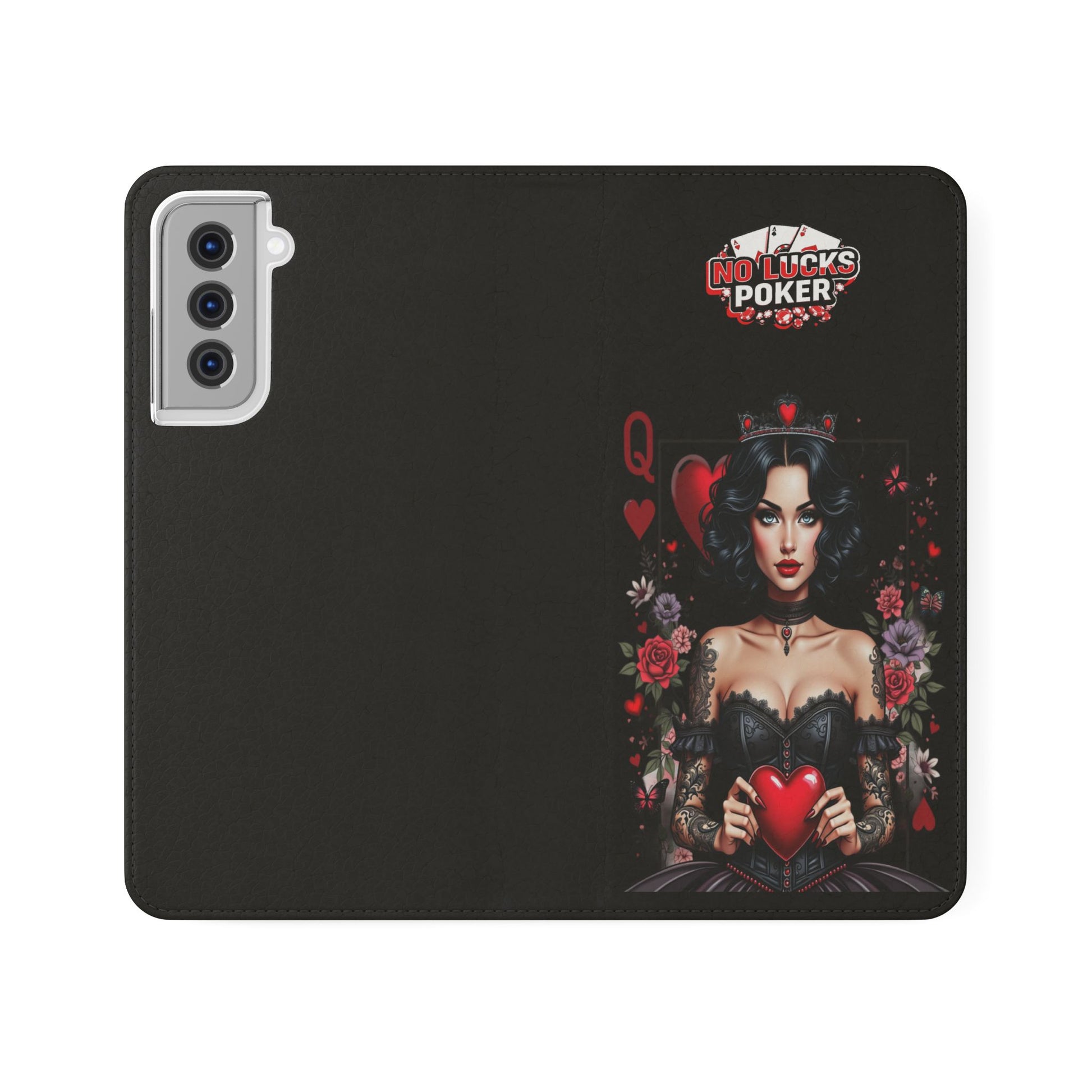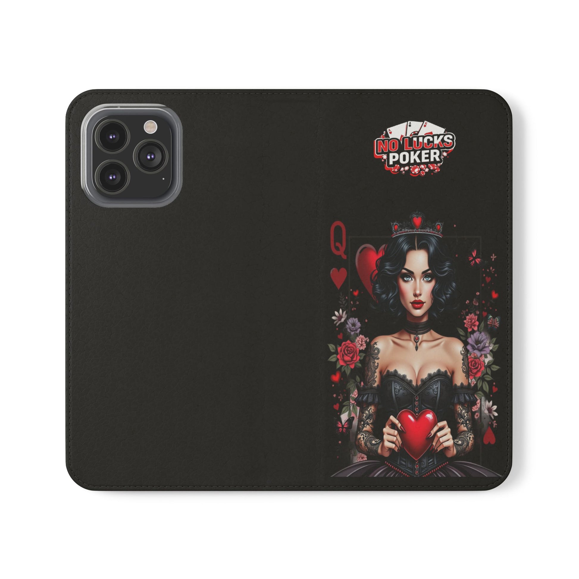 Queen of Hearts Gothic Wallet Phone Case | Zero Lucks – Dark Poker Design – iPhone & Android Phone Cover