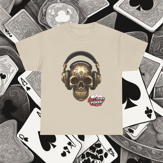 Clockwork steampunk Skull with headphones unisex heavy cotton T-shirt